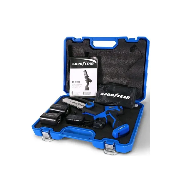 2 BATTERIEN, LADEGERÄT UND WERKZEUGSATZ IM LIEFERUMFANG ENTHALTEN: Zusätzlich zu den beiden 16,8-V-Batterien UND dem Ladegerät enthält die Goodyear-Baumsäge einen praktischen Werkzeugsatz mit 1 Schraubendreher und Schmieröl. Aufladezeit: 4 Stunden