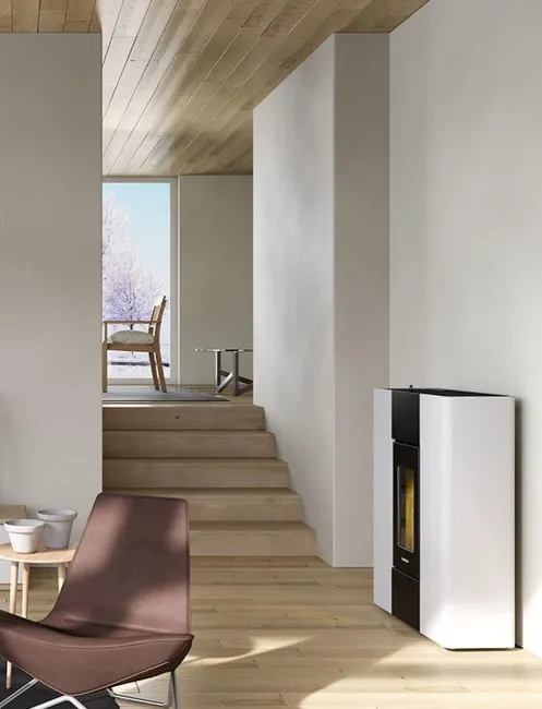Wasserdichter Kaminofen mit AIRTIGHT SYSTEM, das die Luft direkt aus dem Freien ansaugt, so dass sie nicht aus dem Raum entnommen werden muss, was zu einem höheren Wärmekomfort führt. Stahlkonstruktion mit Designersockel; unter bestimmten Bedingungen ist auch eine Wandmontage ohne Standfuß möglich. Einfache Programmierung für Tag und Woche. Einfache Fernsteuerung mit Ihrem Tablet oder Smartphone dank der Vorbereitung WiFi Pack FreePoint. Inklusive Fernbedienung. Anschlussmöglichkeit an ein externes Thermostat. Rauchabzug oben, seitlich oder hinten.